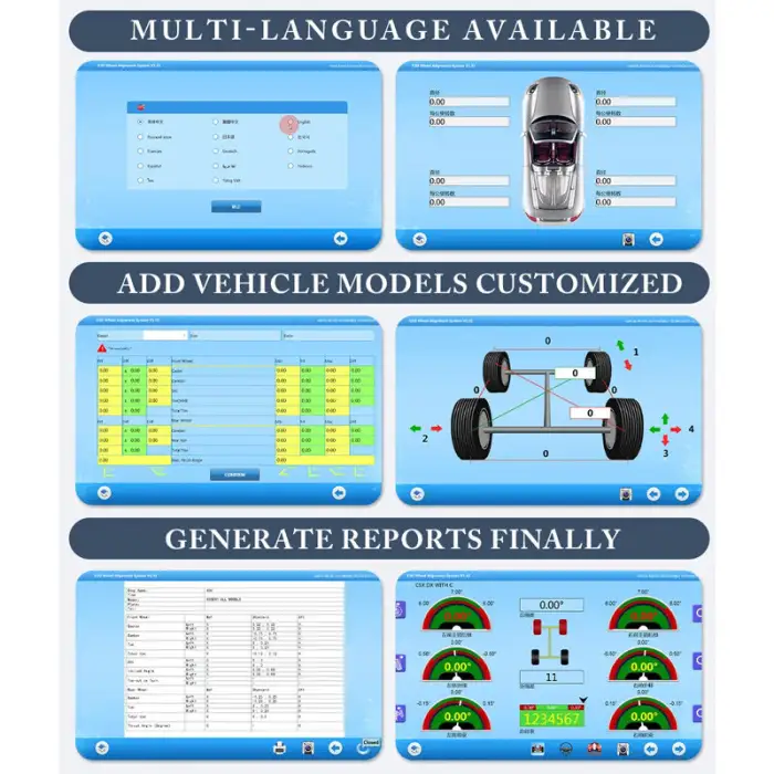 The V3D-SL is ideal for 4S shops, vehicle service stations, garages, and tyre shops that require wheel alignment and balancing services.