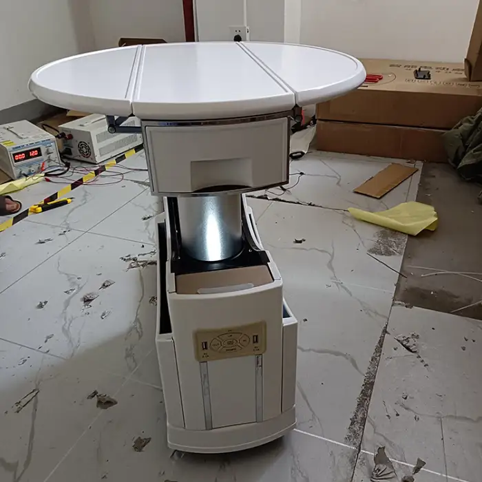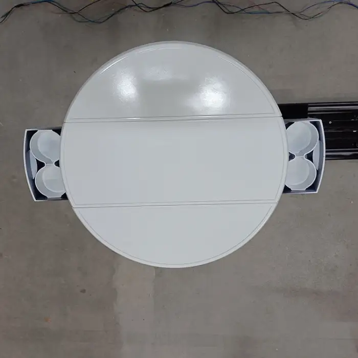 The electric slide mechanism allows for easy adjustment of the table's position, enhancing convenience for passengers.