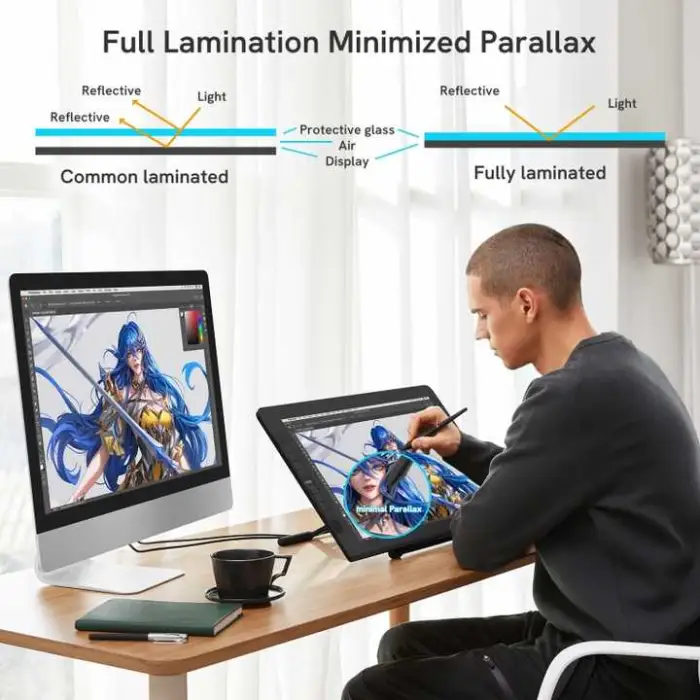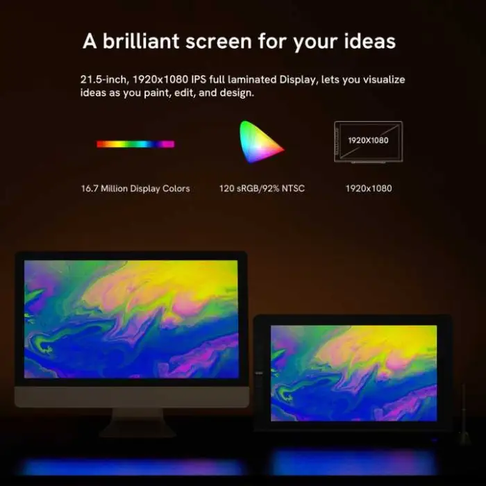 The VEIKK VK2200 Pro features a large 21.5-inch touch screen, providing ample workspace for drawing, design, and editing.