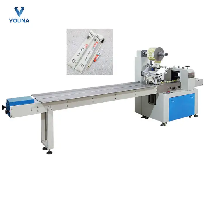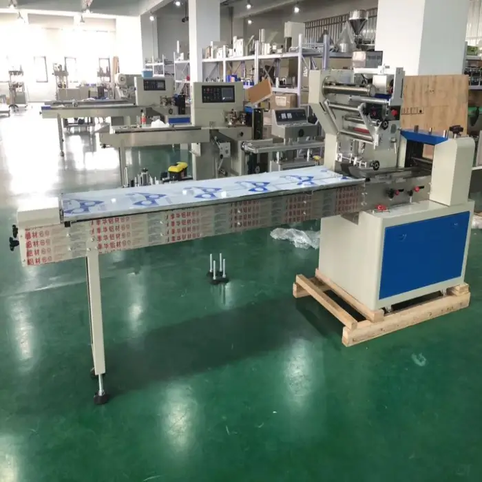 The machine features an automatic operation, allowing users to easily set up and start the packaging process with minimal manual intervention.