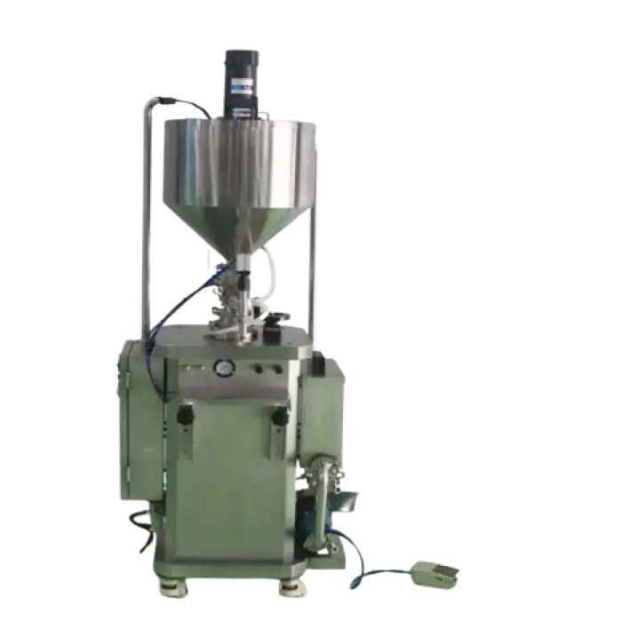 The Vertical Thermostatic Filling Machine is semi-automatic, offering both manual and automatic control options.