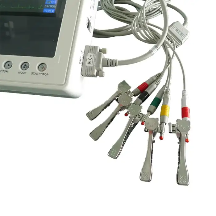 Key features include high accuracy in ECG readings, multi-parameter monitoring including blood pressure, a 12-channel display for comprehensive data, and a durable construction.
