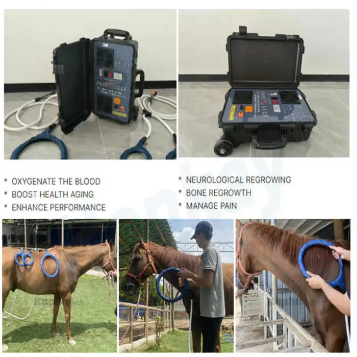 The Veterinary Pemf Equine Machine is designed to help rehabilitate horses with back problems by using pulsed electromagnetic fields to promote healing, improve performance, and provide pain relief.