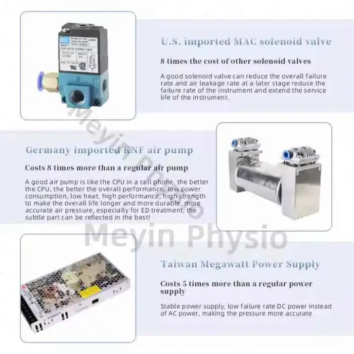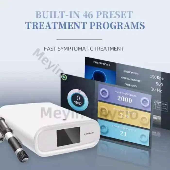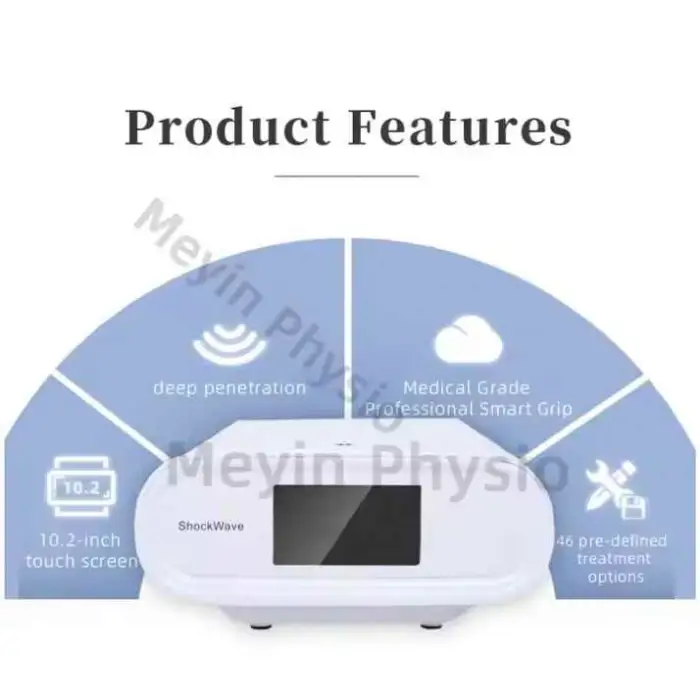 The shockwave therapy machine has a power output of 350VA, which enhances its efficiency during treatment sessions.