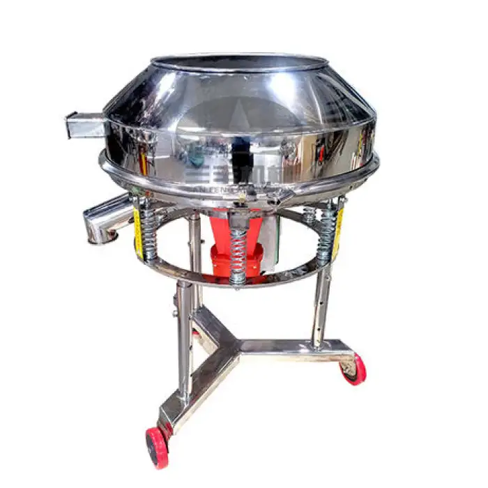 The machine is designed to screen, sort, and sift various types of powders and granules, making it suitable for applications in food processing, chemical industries, mining, pharmaceuticals, and recycling.