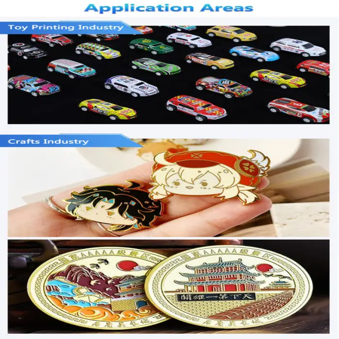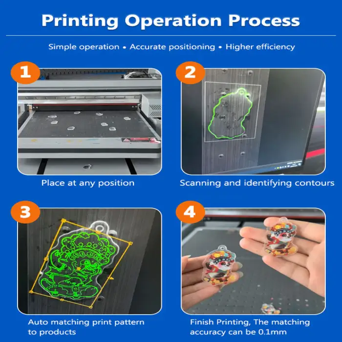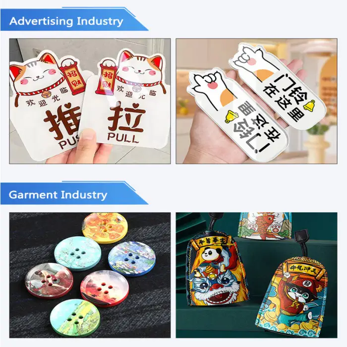 This printer can be used for printing on glass signage, custom wood designs, high-quality metal prints, personalized leather accessories, and acrylic displays.