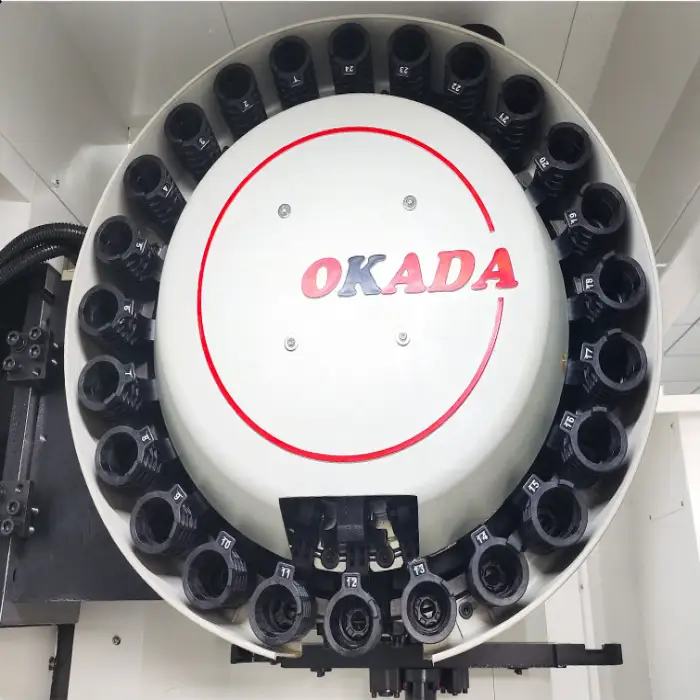 The tool magazine of the VMC855 can hold up to 24 tools.