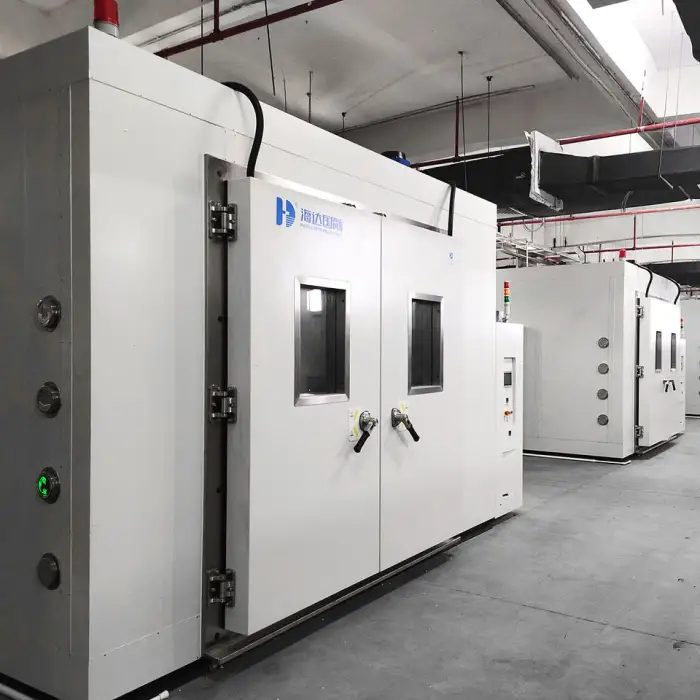 The chamber is suitable for various industries including electronics, material science, food and pharmaceuticals, automotive components, and consumer products.