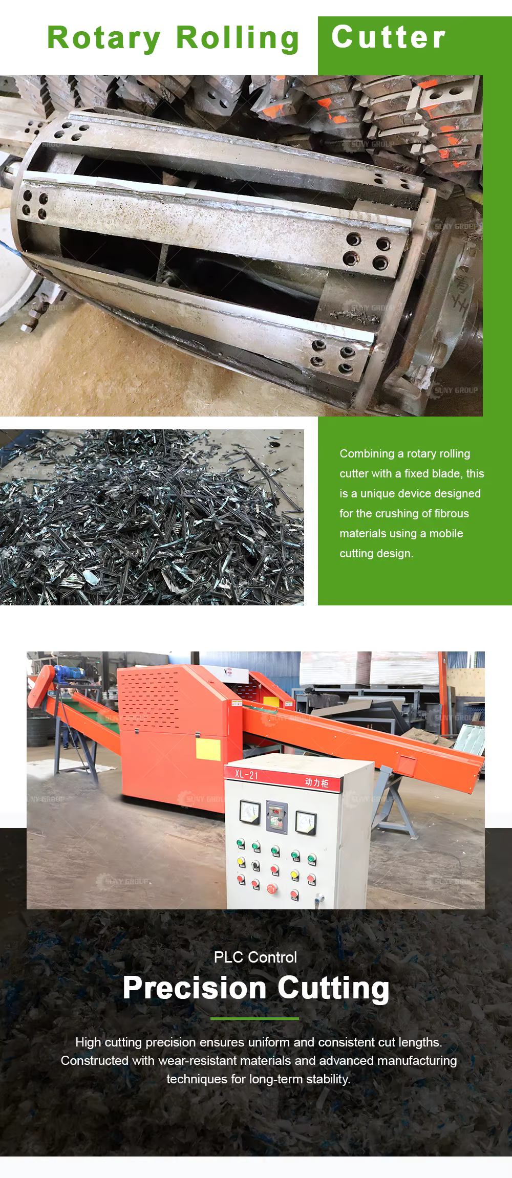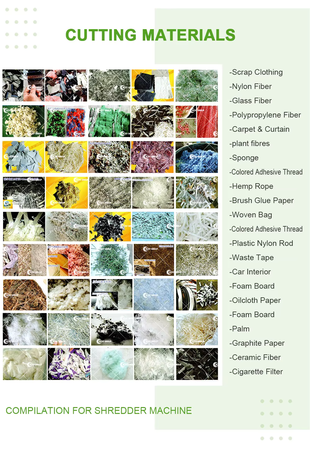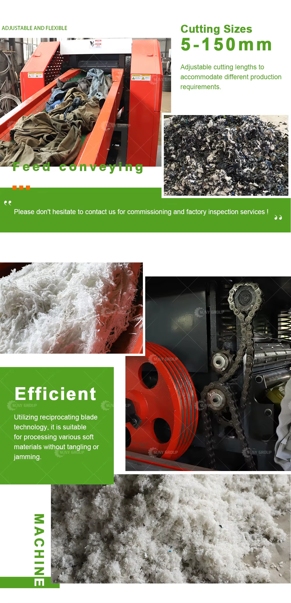This machine is designed to efficiently shred soft materials, specifically waste cloth and textiles.