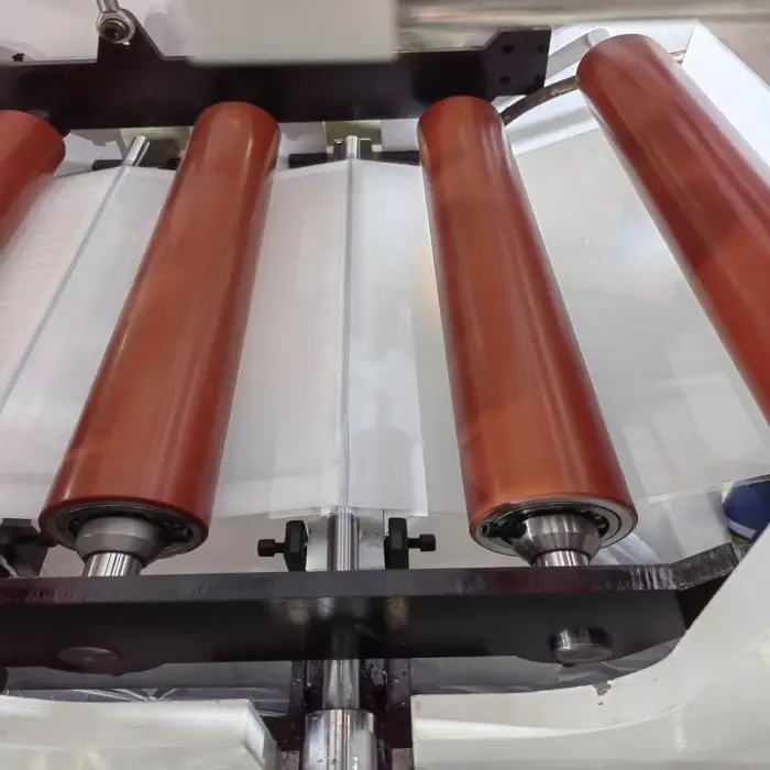 This machine is semi-automatic, combining ease of use with precision for effective adhesive application.