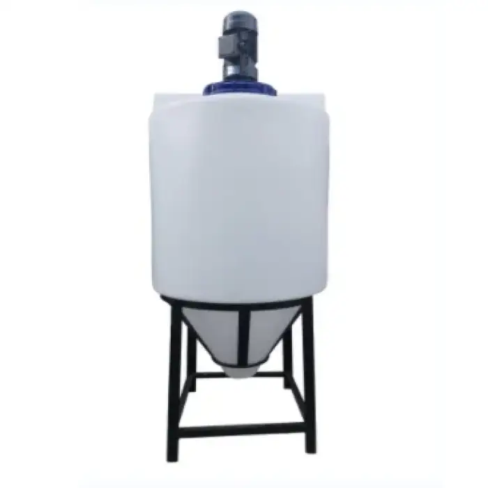 Key features include a high capacity of 1000 liters, a powerful 0.75 kW mixer, durable plastic construction, and customizable colors.