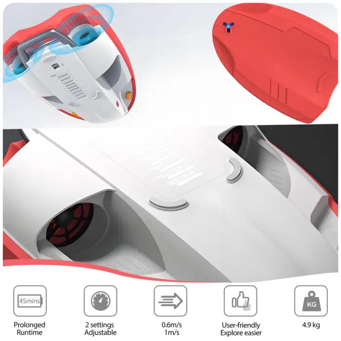 The scooter is versatile and can be used in oceans, lakes, and rivers.