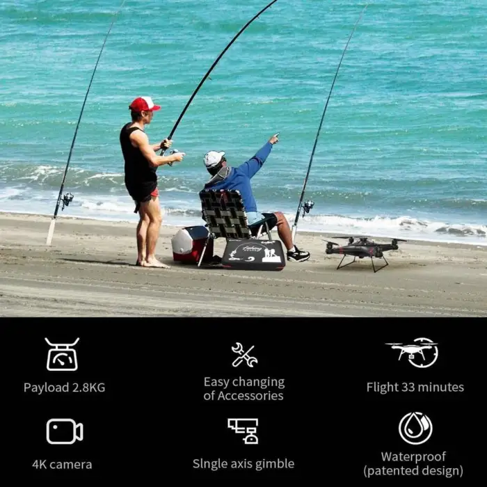 The drone can be used for fishing in remote locations, surveying bodies of water, documenting fishing trips, and enhancing outdoor recreational activities.