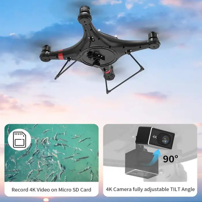The camera on the Waterproof Fishing Drone has a resolution of 4K, allowing for high-quality video recording.