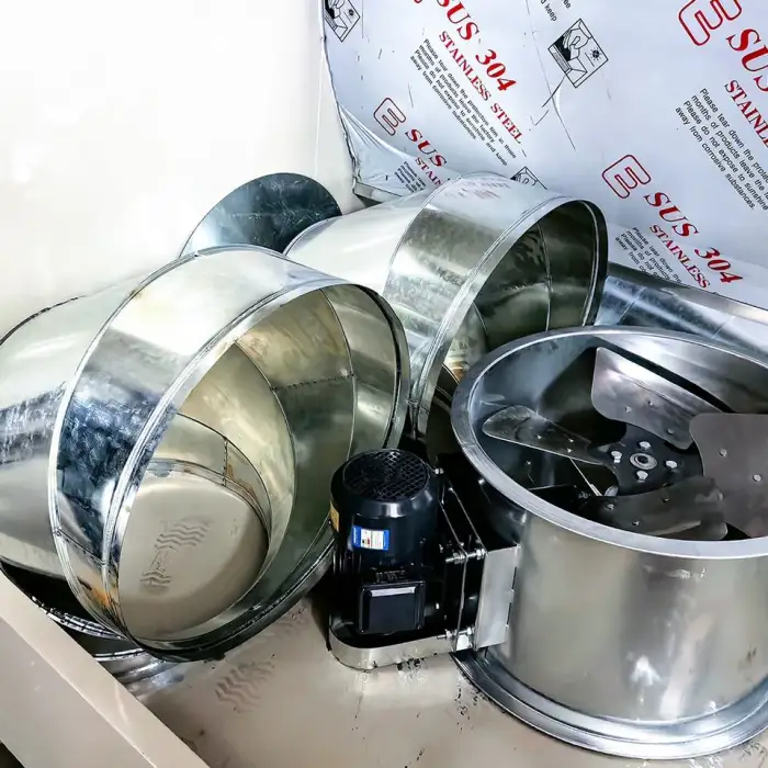 The booth features powerful axial fans that ensure optimal airflow within the painting area.