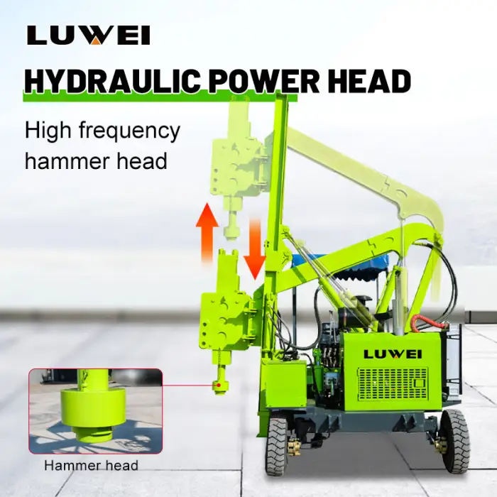 The Wheel Guardrail Pile Driver features a fully hydraulic system for smooth and efficient operation.