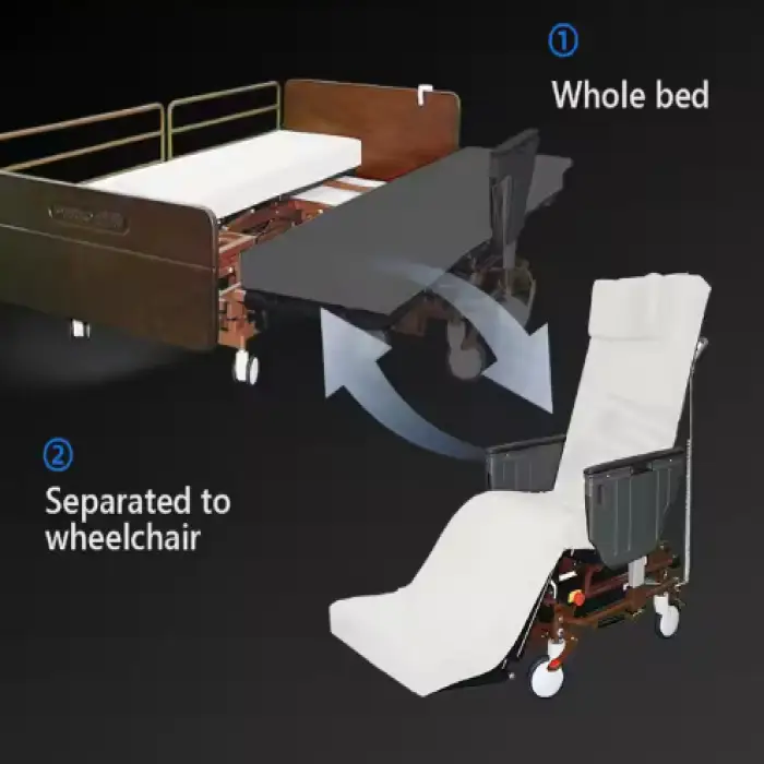 The Wheelchair Nursing Bed is designed to provide comfort and functionality for patients, making it ideal for home healthcare, hospital wards, and nursing facilities.