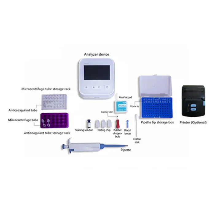 The analyzer requires consumables such as reagents, QC materials and possibly sample tubes or cartridges. Specific consumables and part numbers are listed by the manufacturer or supplier.