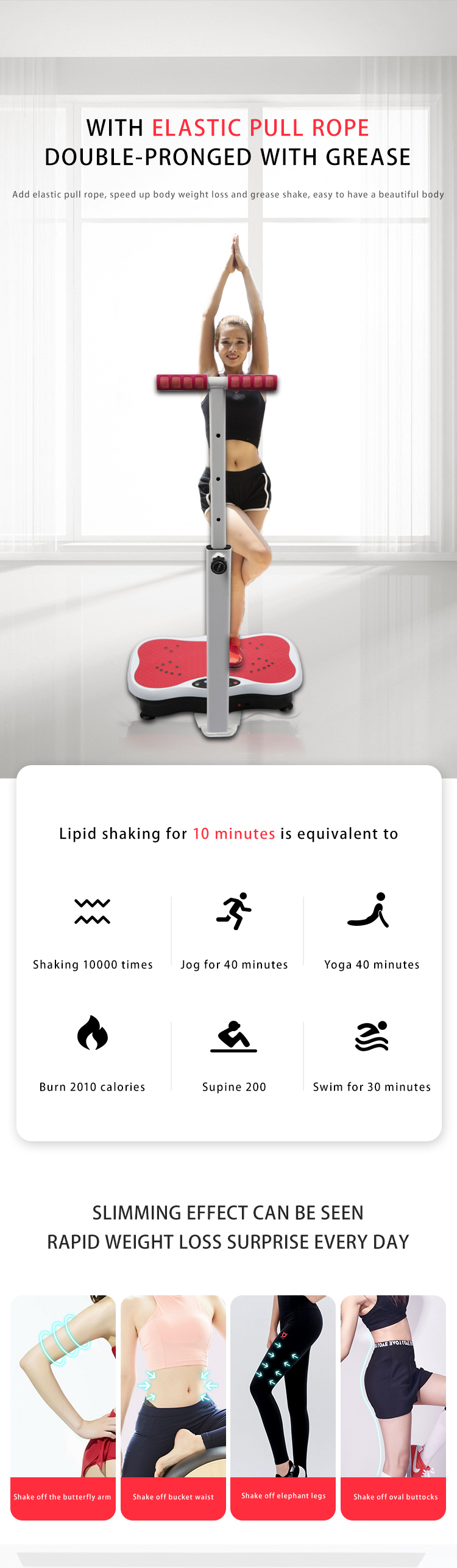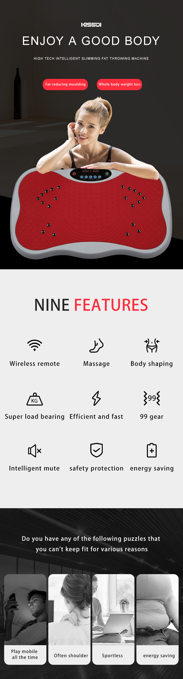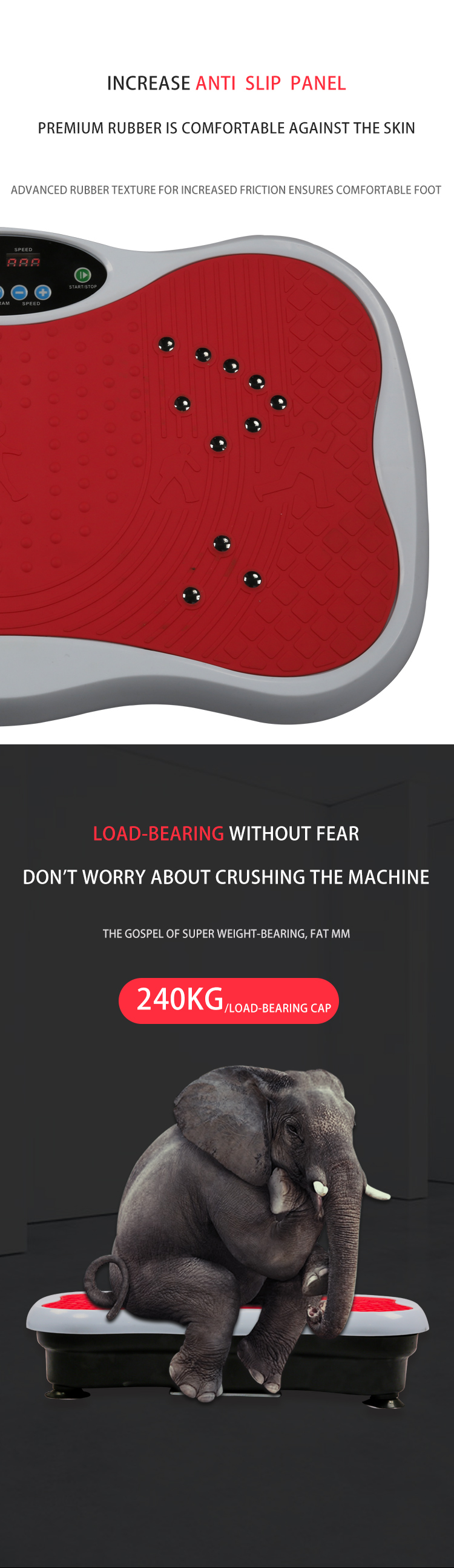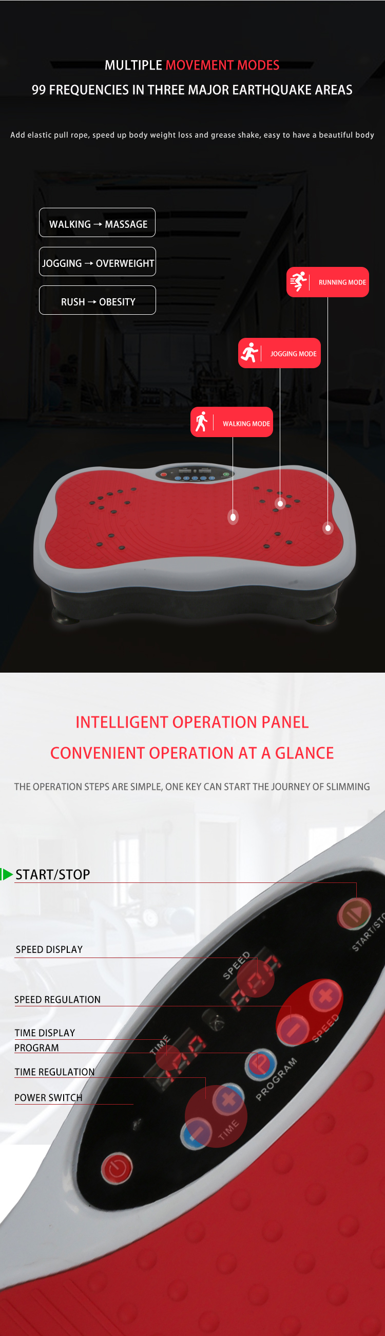 The vibration plate can help enhance muscle strength, improve circulation, and assist in weight loss through vibration therapy.