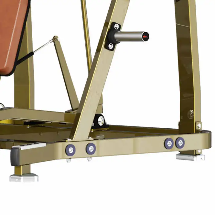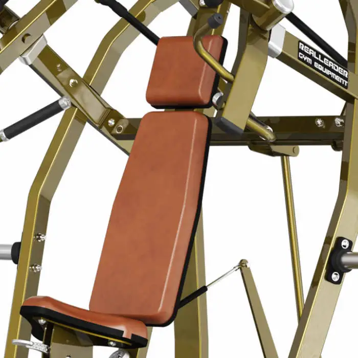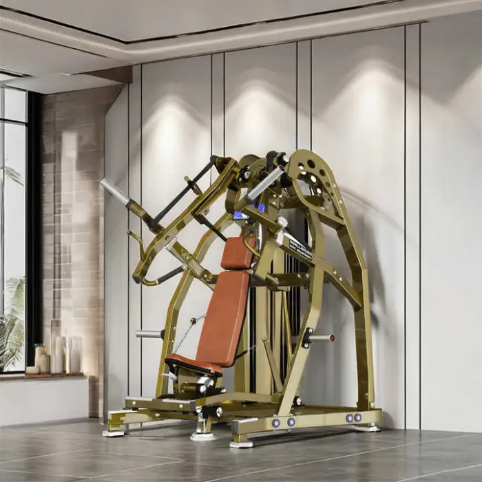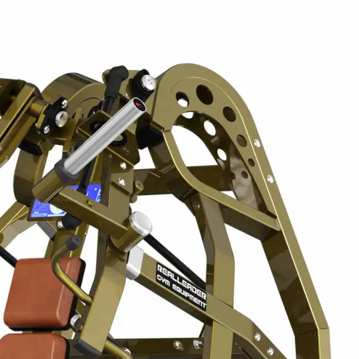The machine features a plate-loaded design, allowing you to customize the weight by adding or removing weight plates.