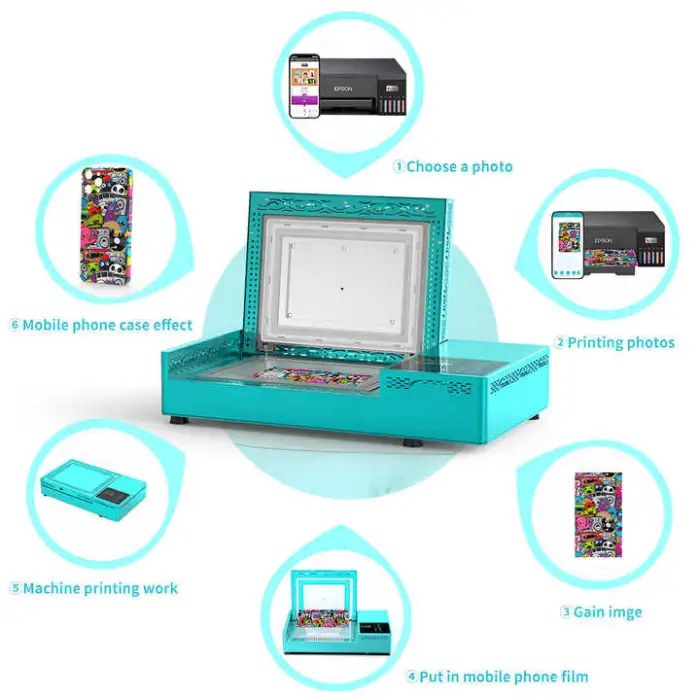 It is a compact sublimation printer designed to create custom phone cases. You design on your smartphone via the companion app and print full-color, durable designs onto sublimation blank phone cases.