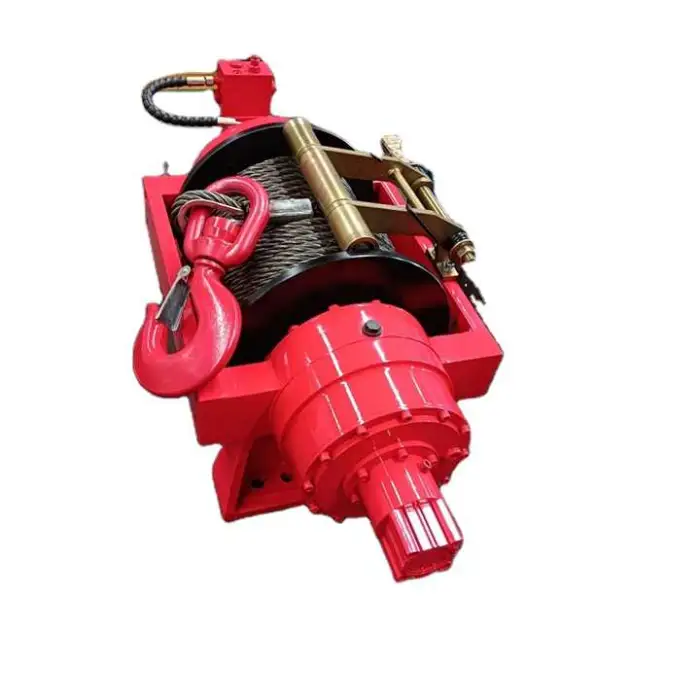 The winch is powered by a hydraulic motor, which provides efficient and powerful lifting capabilities.