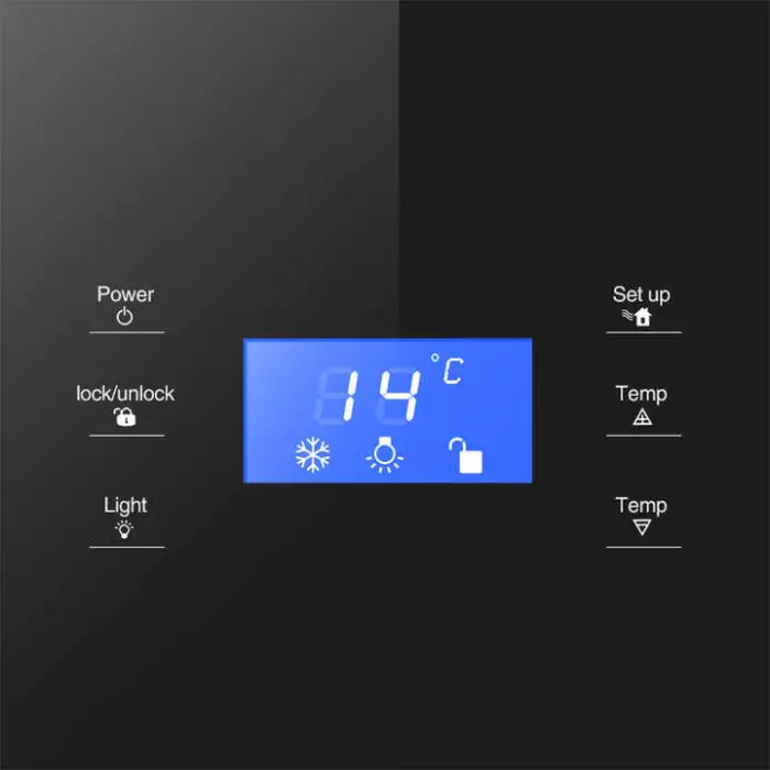 Temperature settings can be controlled easily using the touch panel located on the intelligent LED control panel.
