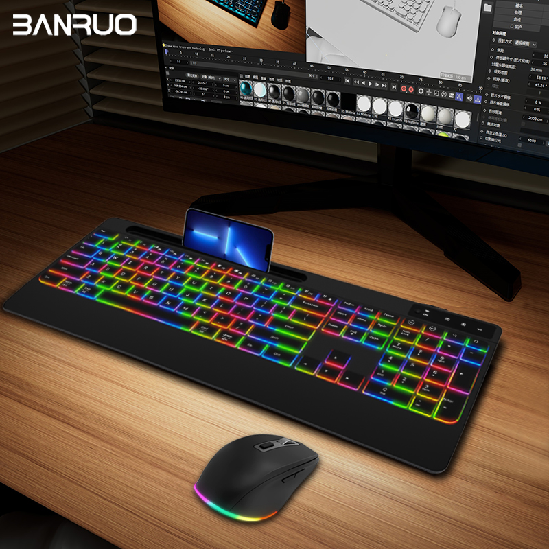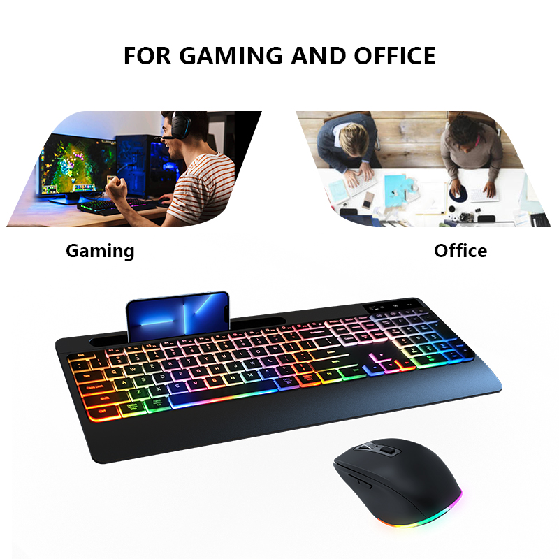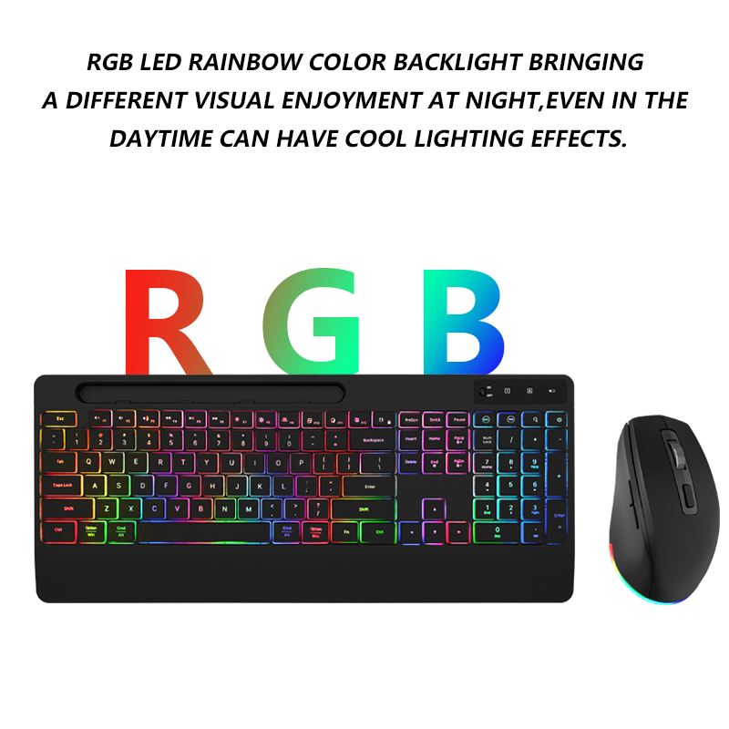 The wireless keyboard and mouse combo is equipped with a 1000mAh rechargeable battery, providing extended usage between charges.
