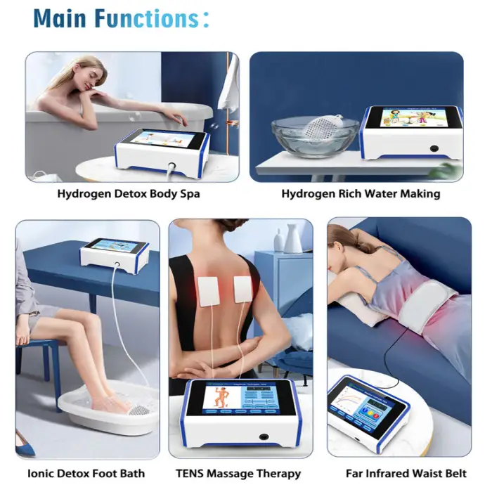 The Wonderful Detoxification Machine is designed to detoxify the body using hydrogen detox technology, providing purification through foot and bath spa sessions.