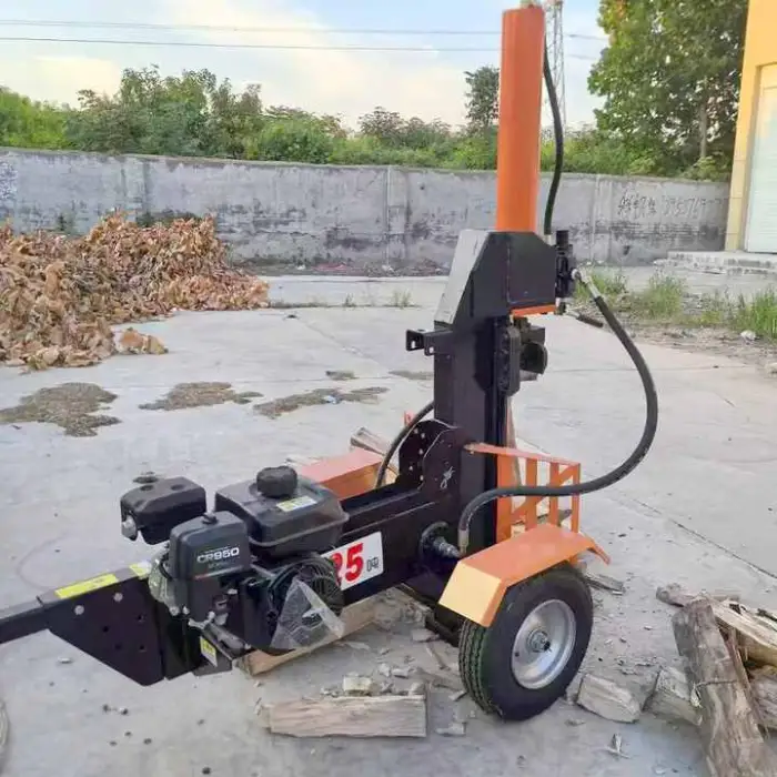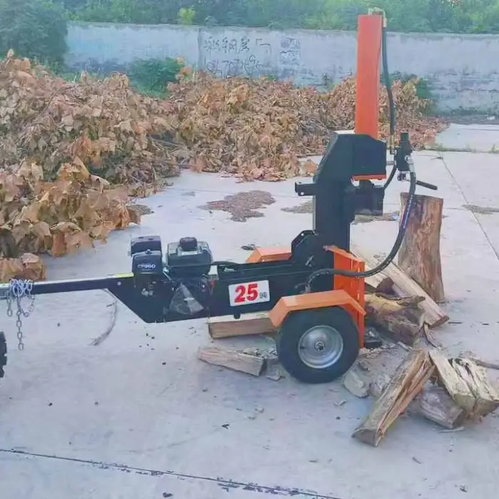 The splitter is offered in multiple capacities: 7 ton, 15 ton, 20 ton, and 25 ton so you can choose based on the size and hardness of wood you need to process.