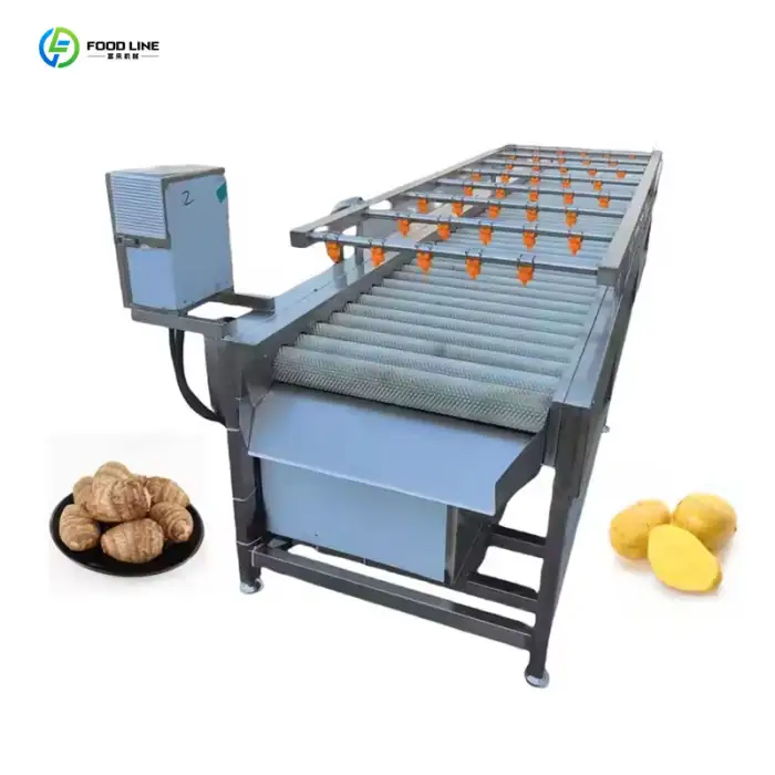 This machine is designed for processing a variety of vegetables, including potatoes, as well as fruits.