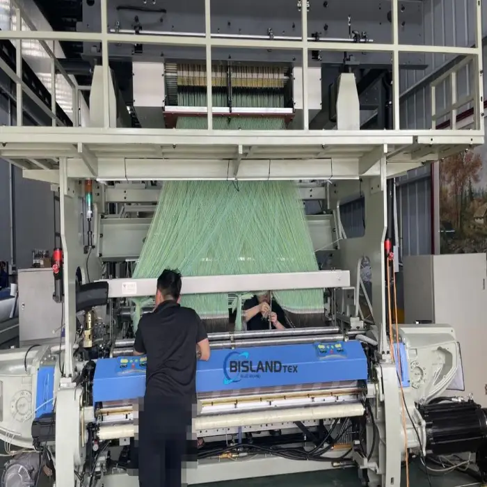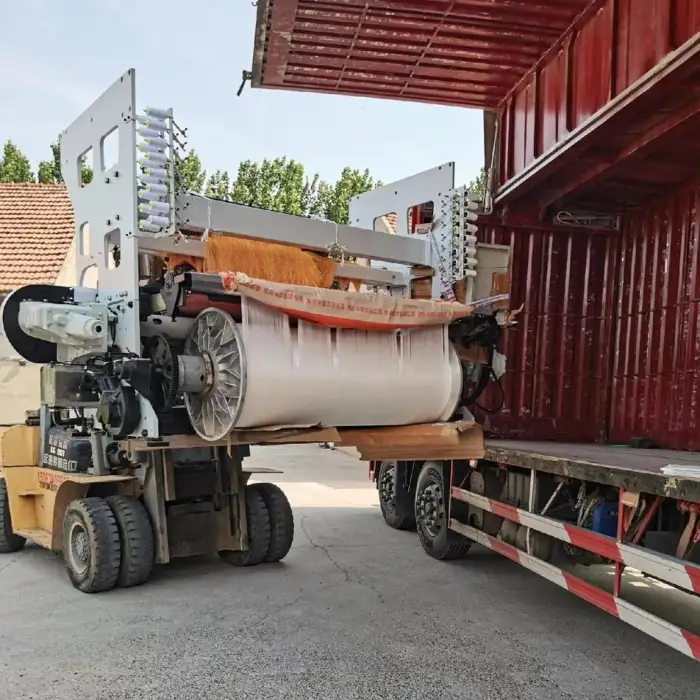 The machine can accommodate between 1344 to 12800 hooks, allowing for versatile weaving options.