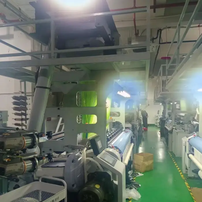 Key features include high-speed rapier loom technology, advanced Jacquard for detailed designs, customizable harness options, electronic selvedge motion, and an efficient mechanical weft cutter system.