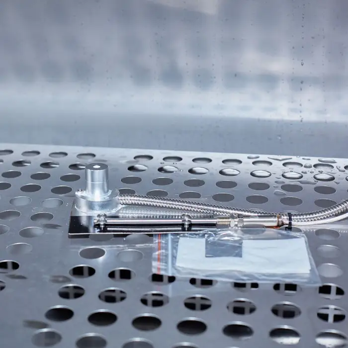 The test chamber is constructed from durable stainless steel SUS304#, which ensures longevity and resistance to corrosion.