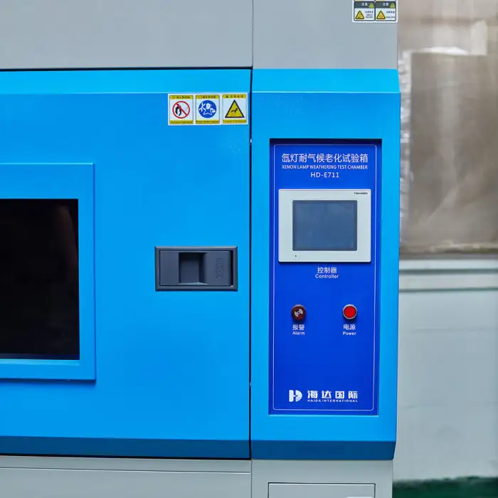 The Xenon Arc Lamp Test Chamber facilitates aging testing that simulates real-world weathering conditions to evaluate material performance.