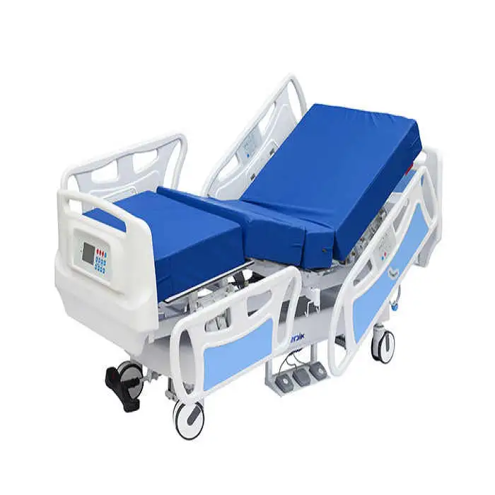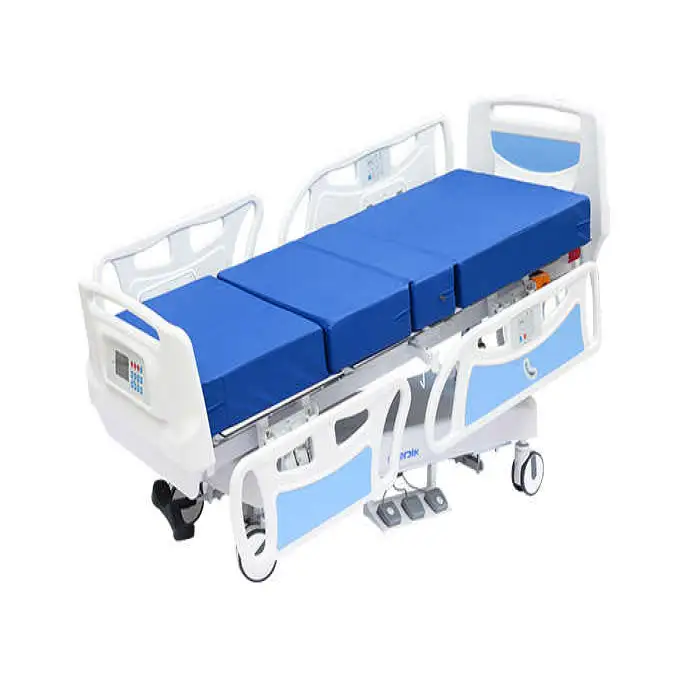 The bed includes multi-function electric adjustments for enhanced comfort and patient care.