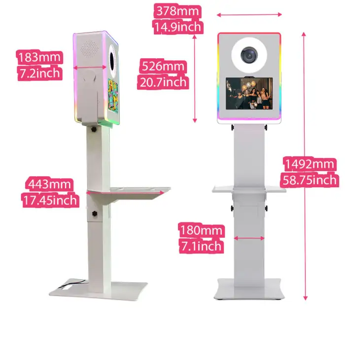 The photo booth is made from a durable metal sheet, ensuring long-lasting use and a stylish appearance.