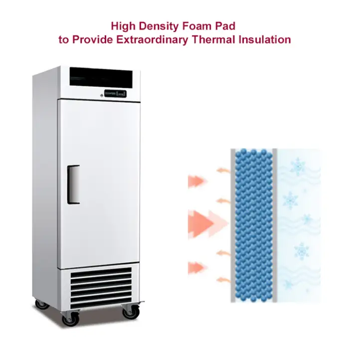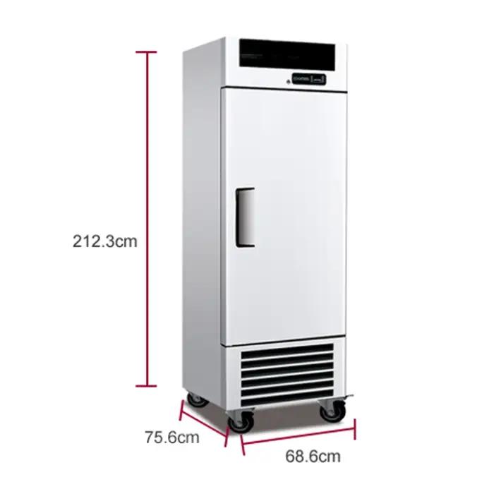 It uses a fan cooling system for even temperature distribution and is charged with R290 refrigerant (propane-based, low GWP).