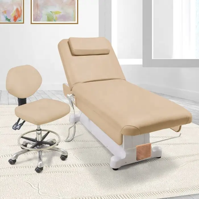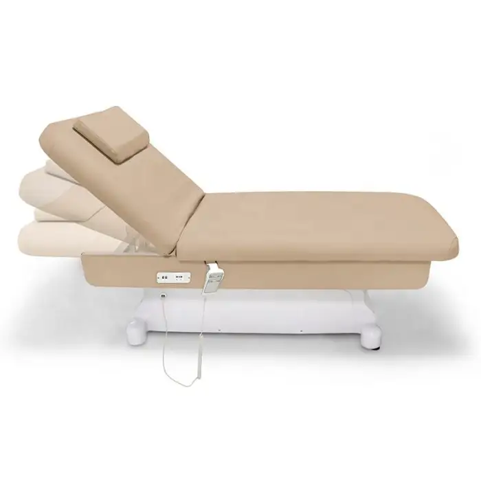 The beauty bed is available with 1, 2, or 3 motors, providing flexibility for different treatments.