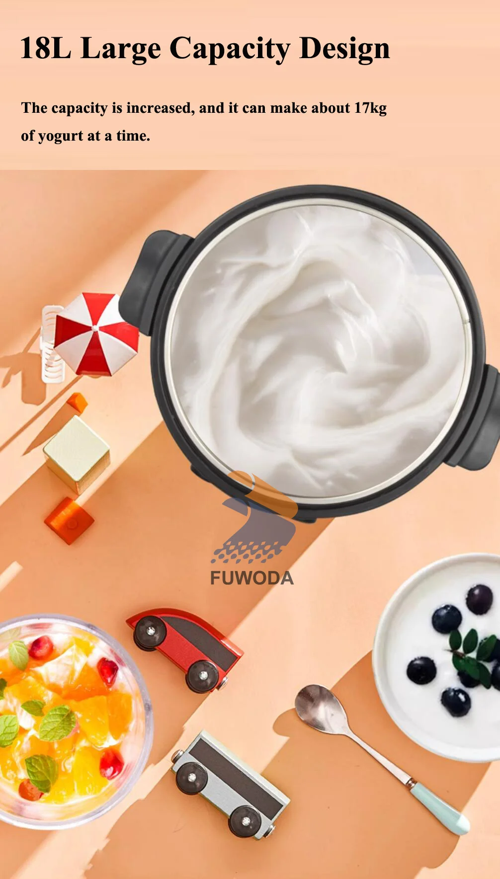 The Yogurt Fermentation Machine has a large capacity of 18 liters, making it ideal for preparing large batches of yogurt.