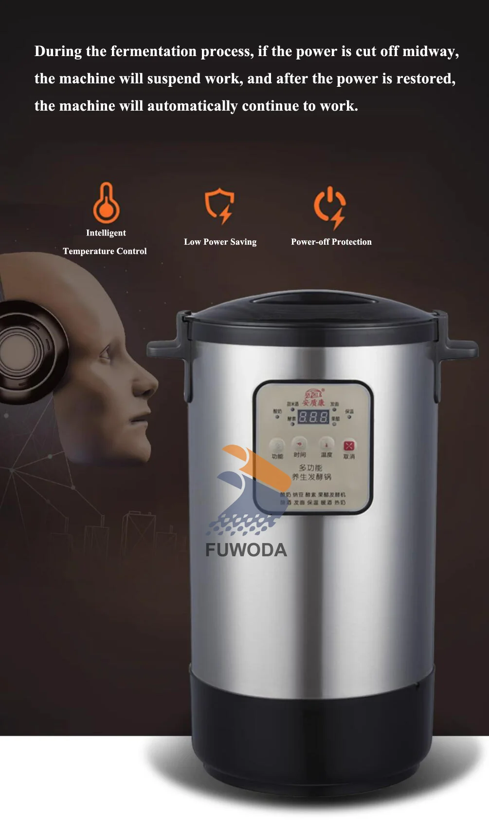 The machine features a precise 90°C temperature controller that allows you to set the desired temperature for optimal fermentation.