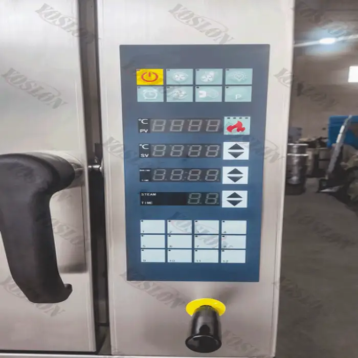 This oven can hold up to 10 trays, with a configuration of 5 trays + 5 trays.