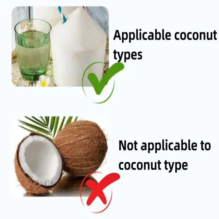 It is designed primarily for young green (fresh) coconuts. It may not be suitable for very hard, mature, brown coconuts without risking damage to the tool or reduced performance.