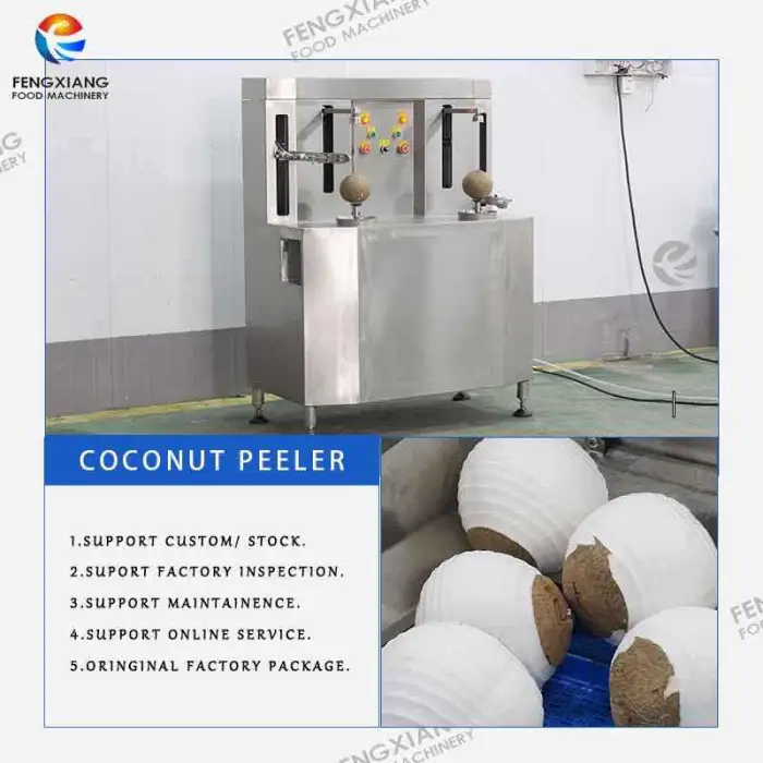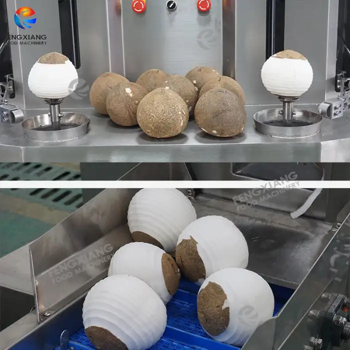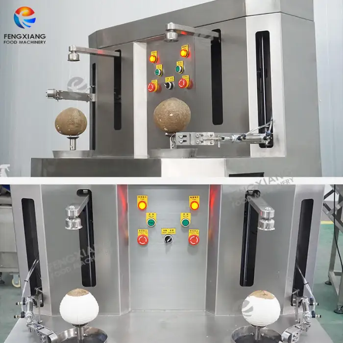 The YZ-2 Dual-Blades Brown Coconut Peeling Machine can peel up to 500-600 coconuts per hour.