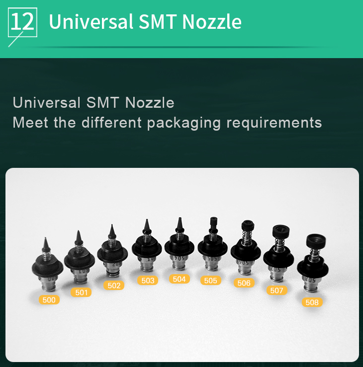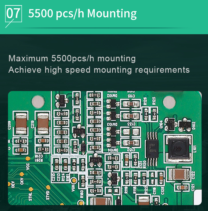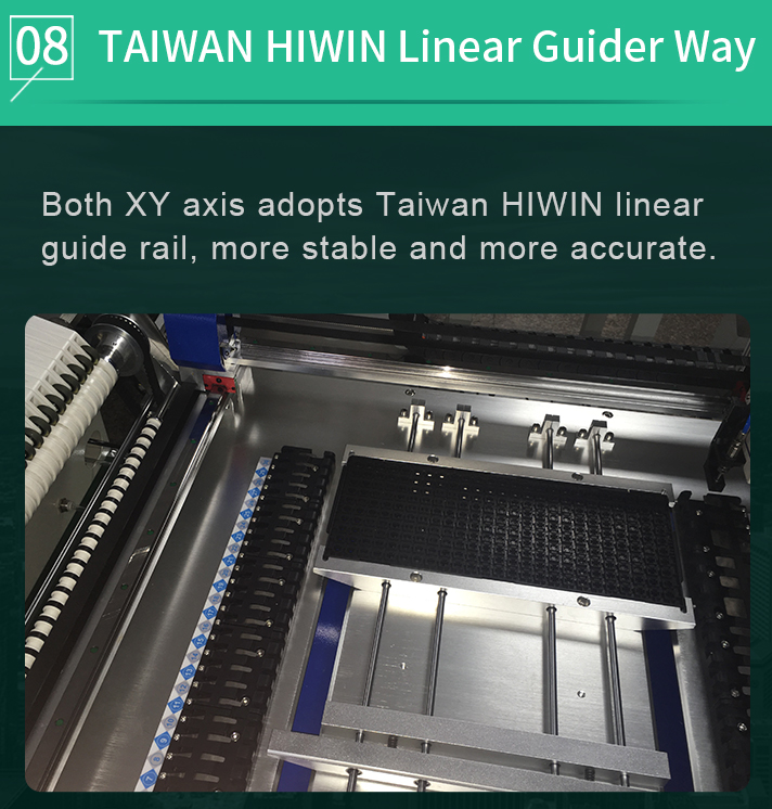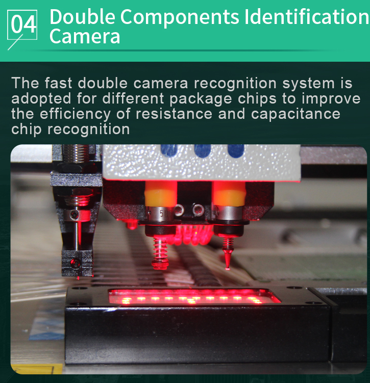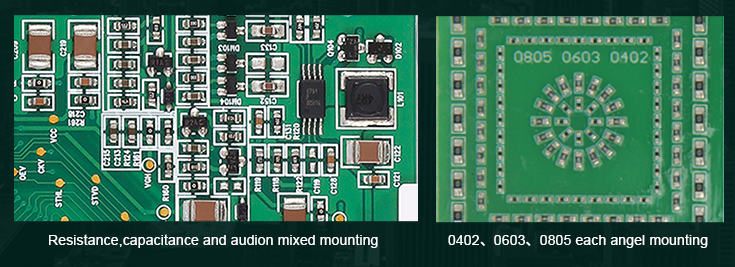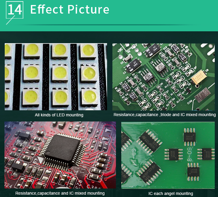 The machine can place a wide variety of surface-mount components, including resistors, capacitors, ICs, and more, with high precision.