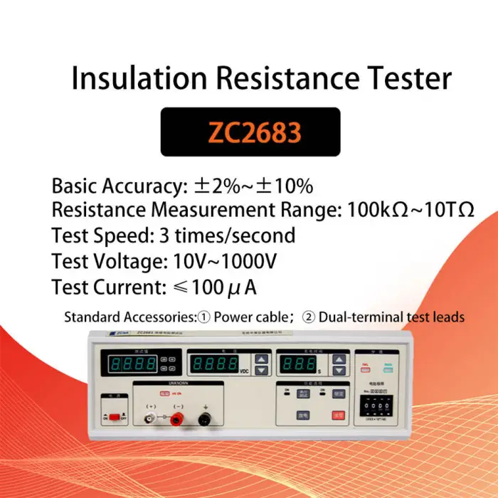 The ZCTEK ZC2683 can test resistances ranging from 100kΩ to 10TΩ.