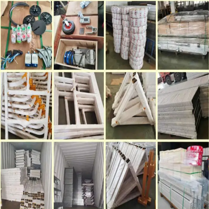 The scaffolding is made from strong galvanized steel and aluminum alloy for durability and safety.