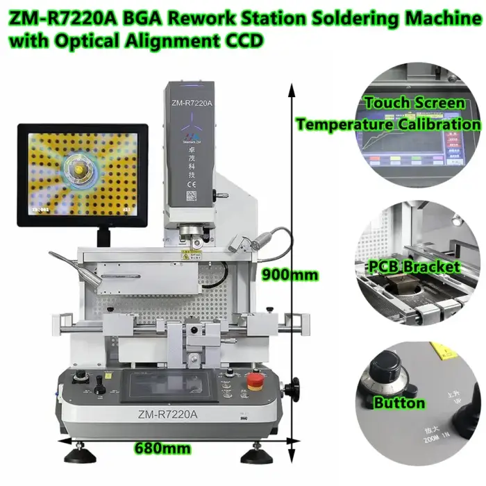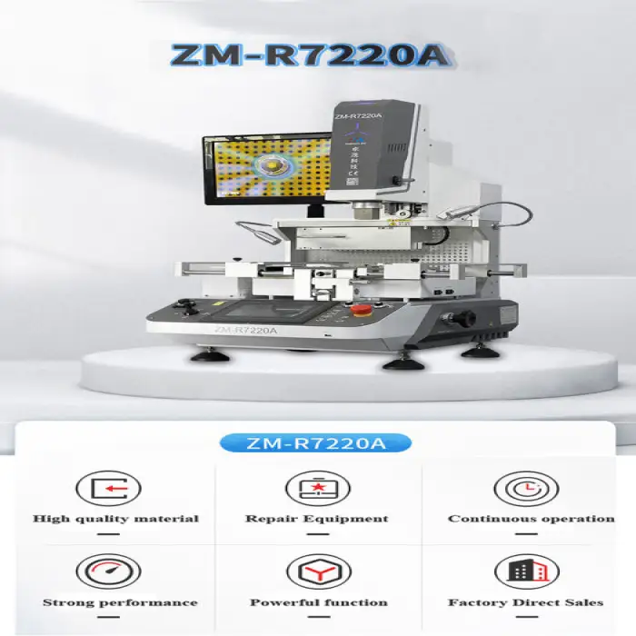The ZM-R7220A is suitable for repairing BGA and socket components, as well as computer and laptop motherboards.