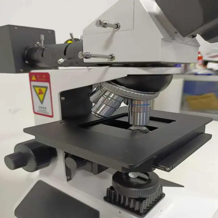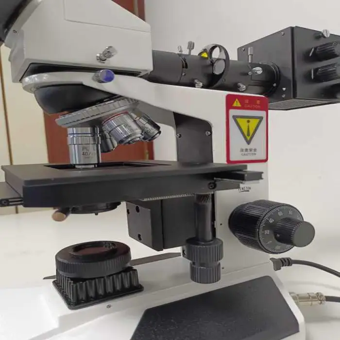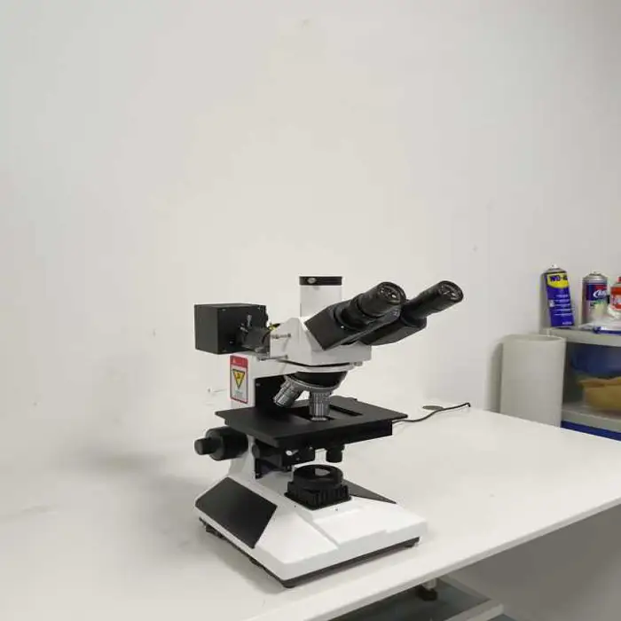 The microscope can be used to examine a variety of materials, including metals, polymers, and composites, for detailed microstructural analysis.