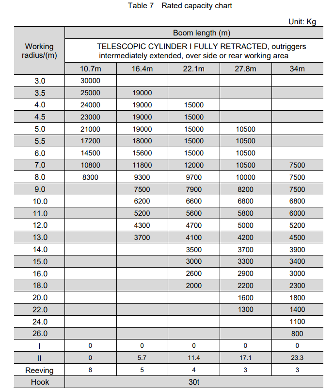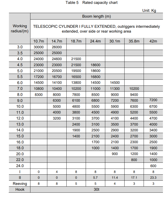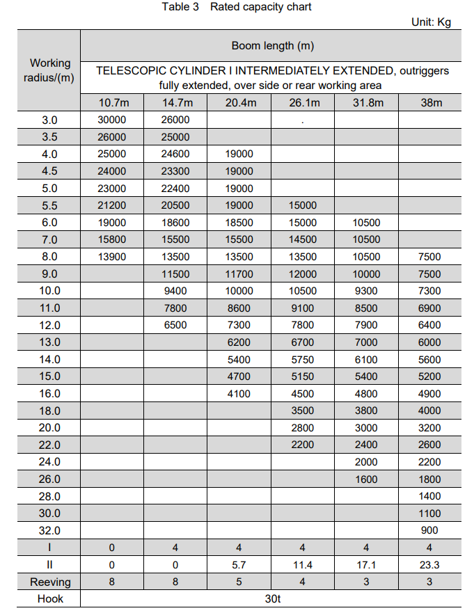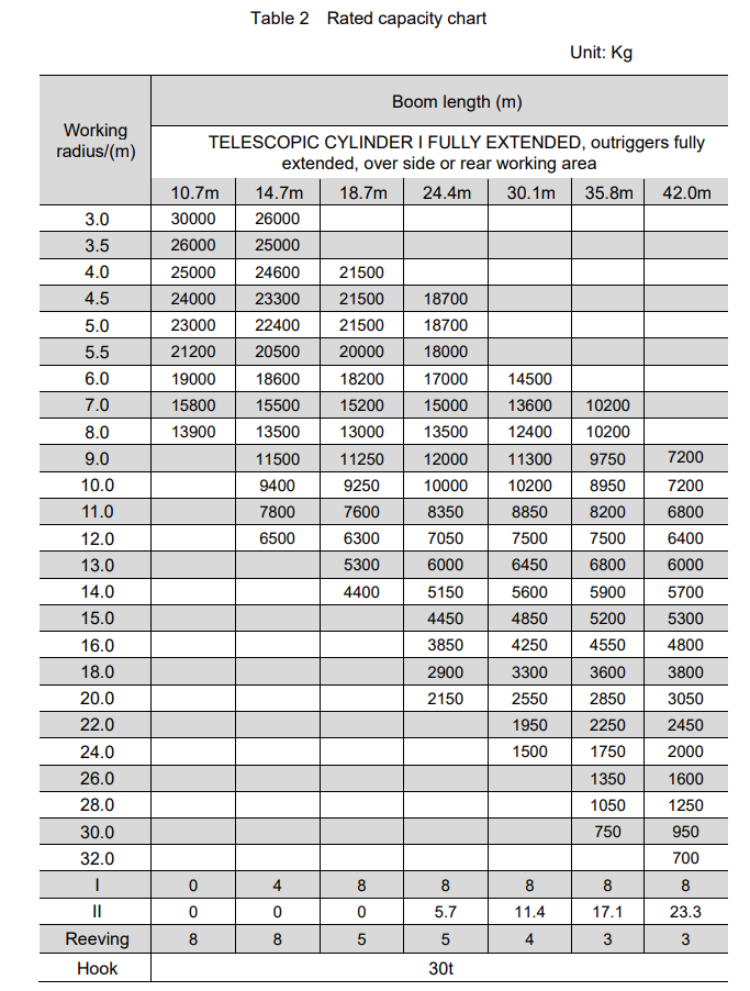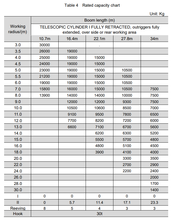 The Zoomlion 30ton Truck Crane ZTC300V532-1R has a rated lifting capacity of 30 tons.